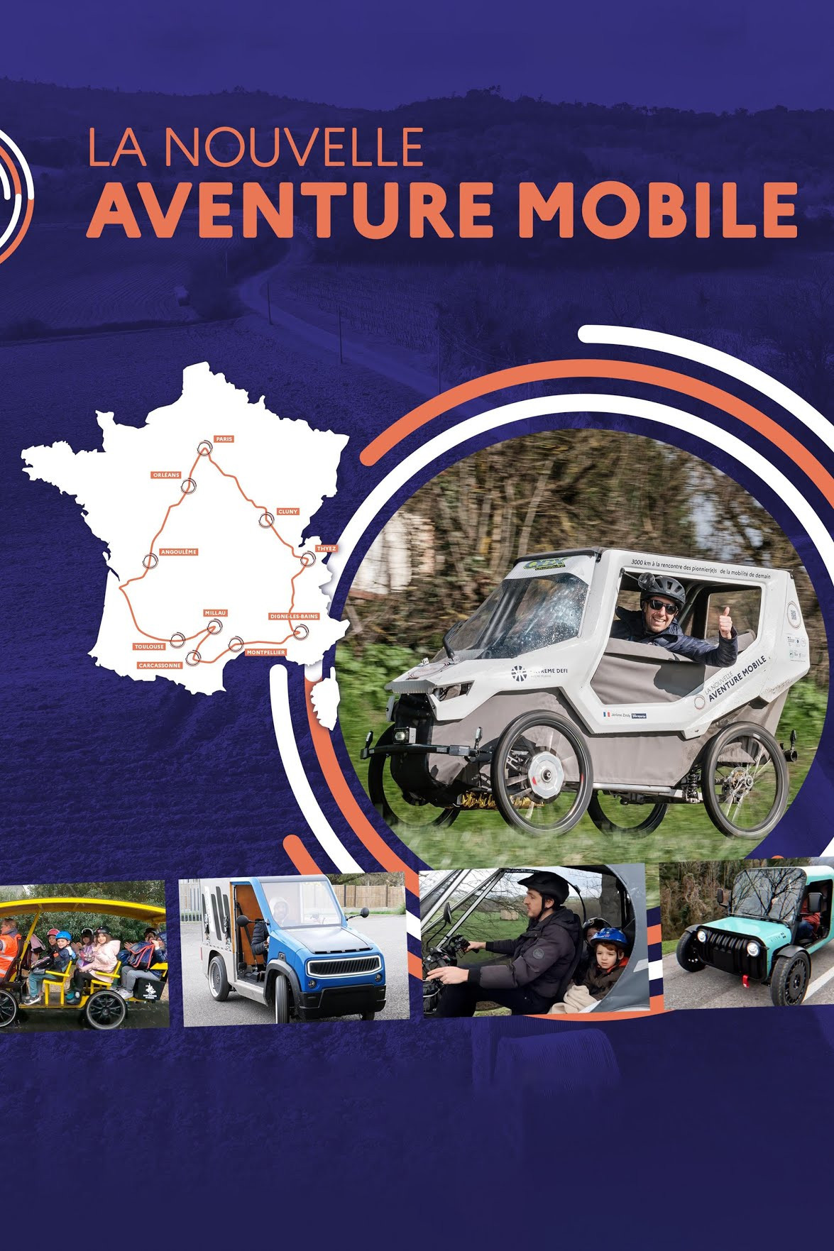 Synopsis : À la rencontre des pionnier(e)s d’une mobilité plus durable et «made in France». En février et mars 2024, Jérôme Zindy, vélo-reporter, a parcouru la France à bord d’un véhicule durable et innovant, intermédiaire entre le vélo et la voiture électrique : un véli. Ces véhicules écologiques et économiques forment une alternative crédible à l’automobile en zone péri-urbaine et rurale. Légers, sobres, simples à assembler grâce à des composants standards, recyclables et optimisés pour chaque usage, ils sont une solution économique pour améliorer la vie des français(e)s et créer des emplois locaux. L'ADEME soutient leur développement à travers le programme l'eXtrême Défi Mobilité lancé en 2022 et financé par France 2030. Avec 62 jours d'aventure, 3734 km parcourus et seulement 28,30 € de recharge électrique par véhicule, ce premier tour de France en véhicules intermédiaires aura permis de réaliser 17 épisodes à l'origine de ce film "La Nouvelle Aventure Mobile". La Nouvelle Aventure Mobile 2024 c'est aussi près d'une centaine de retombées médias, plus de 21 millions de messages délivrés et une couverture digitale de plus de 2,9 millions de vues totales sur les réseaux sociaux. C'est également une production vidéo la plus décarbonée possible avec seulement 21,12 kgCO2e émis pour le tournage du teaser, l'acheminement et la tournée, soit près de 12OO kgCO2e évitées par rapport à un projet réalisé en voiture thermique !